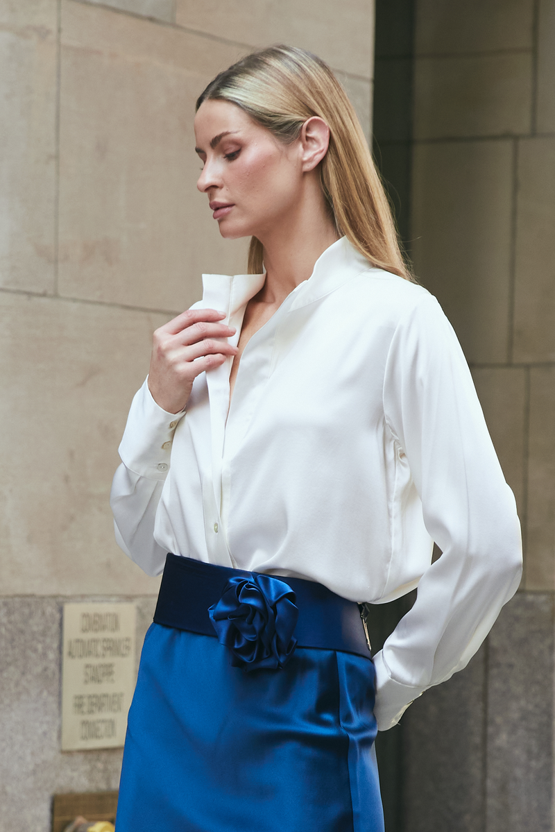 Silk95Five is made in the historic sericulture region of China. I love visiting the factory and watching the process as skilled female artisans take pride in their craft. We recently introduced LUXE, our exclusive silk charmeuse with stretch, offering added structure for clients seeking a more refined feel for special occasions.
